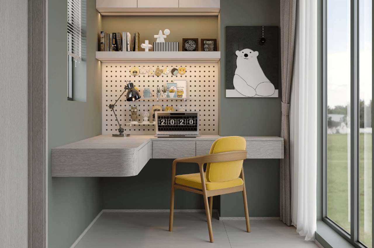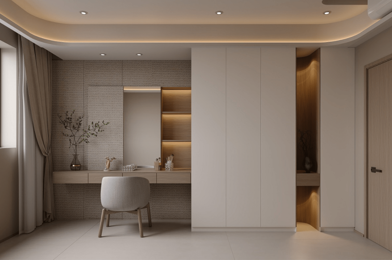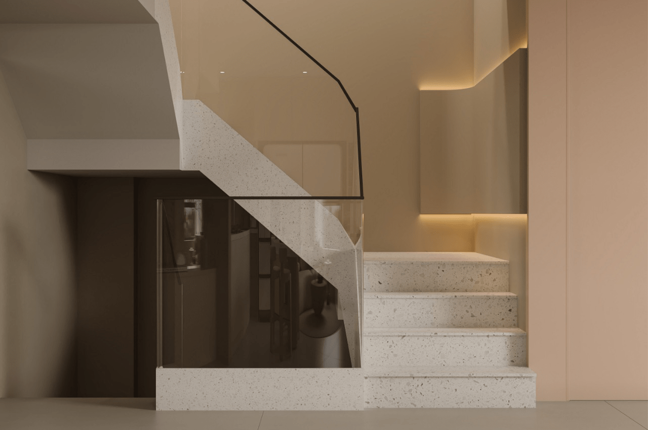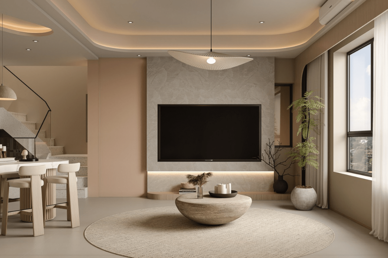 透過柔和的色調、圓潤的線條與自然材質,營造出溫潤而純淨的居家氛圍。全室以塗裝板、乳膠漆與壁紙 創造層次牆面,搭配 環保抗菌塗料,讓孩子與寵物能安心生活。公共空間選用 人造石與金屬配件,增添現代感與耐用性;地坪則採用 超耐磨地板,兼顧實用與美觀。四層樓、約 50 坪的空間,為一家四口量身規劃一樓迎接日常的序曲與工作角落,二樓串聯餐敘與互動核心,三樓規劃溫潤的主臥與孩子的成長天地,四樓則留白給家人自在的小角落。這是一個簡單卻充滿溫度的家,在光影中安靜陪伴家人的每一天。